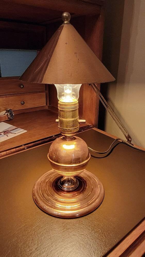 Lamp has been cleaned, but nothing has been modified; I did include a low wattage LED spiral Edison bulb.